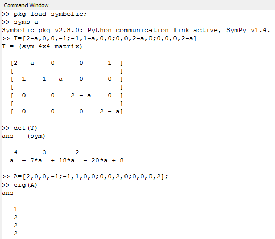 T = [2-a,0,0,-1;-1,1-a,0,0;0,0,2-a,0;0,0,0,2-a];